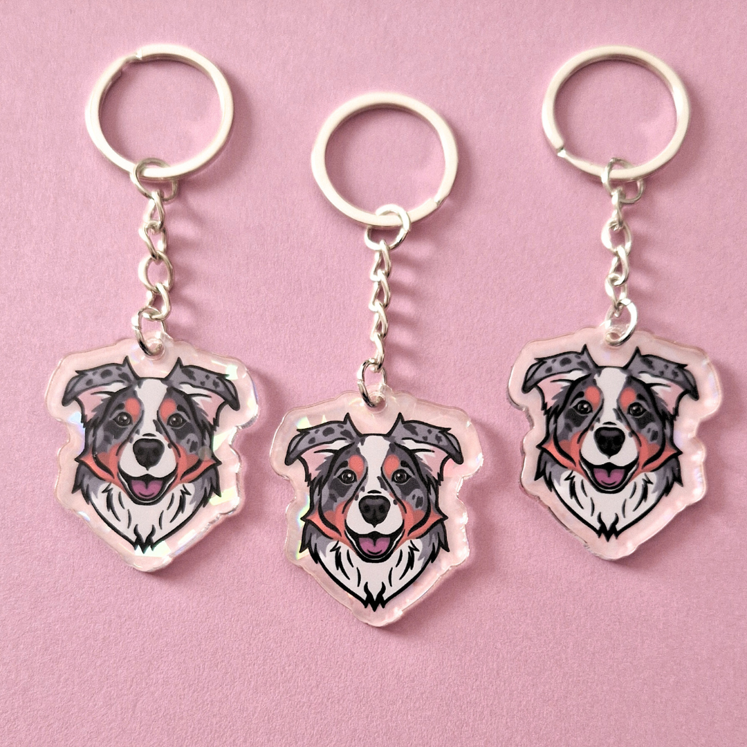 Akrylowy brelok z autorskim wzorem Aussie – kolor oczu brązowe – jedyny taki wzór w Polsce i na świecie!