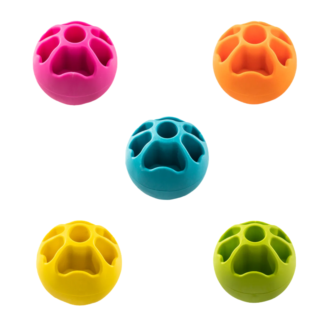 Piłka uczy cierpliwości i opanowania, nie hałasuje i pomaga w wyciszeniu. Jest wytrzymały, unosi się na wodzie i nie zawiera toksycznych substancji. Jego kolorystyka zapewnia doskonałą widoczność w każdych warunkach. W 100% nadaje się do ponownego przetworzeni. Średnica piłek to 6 i 8cm.