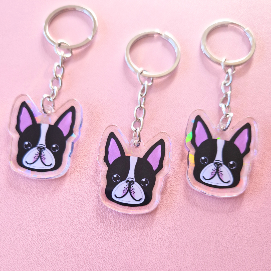 Duży brelok z autorskim wzorem Boston Terrier – jedyny taki wzór w Polsce i na świecie!