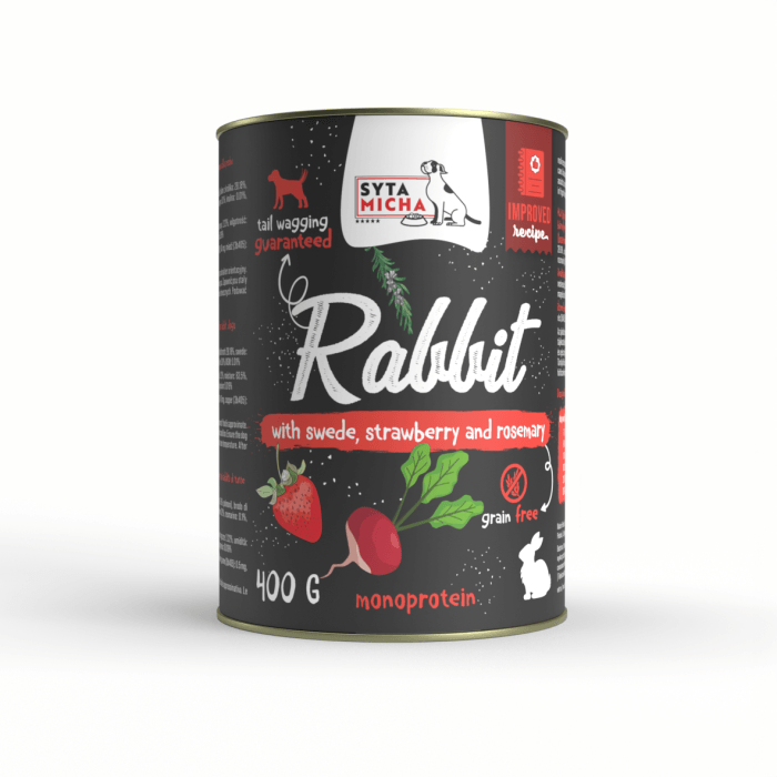 Zalety karmy mokrej królik z brukwią, truskawką i rozmarynem: