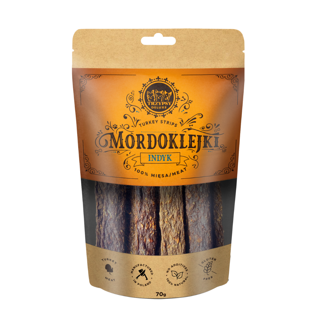 W pełni naturalne gryzaki dla psów, wykonane ze 100% mięsa w formie podłużnych pasków. Nie zawierają konserwantów ani barwników. Przysmak ten jest smaczny i pożywny, stanowi doskonałe uzupełnienie codziennej diety naszego pupila. Idealnie sprawdzą się jako nagroda. Opakowanie zawiera 70g produktu.
