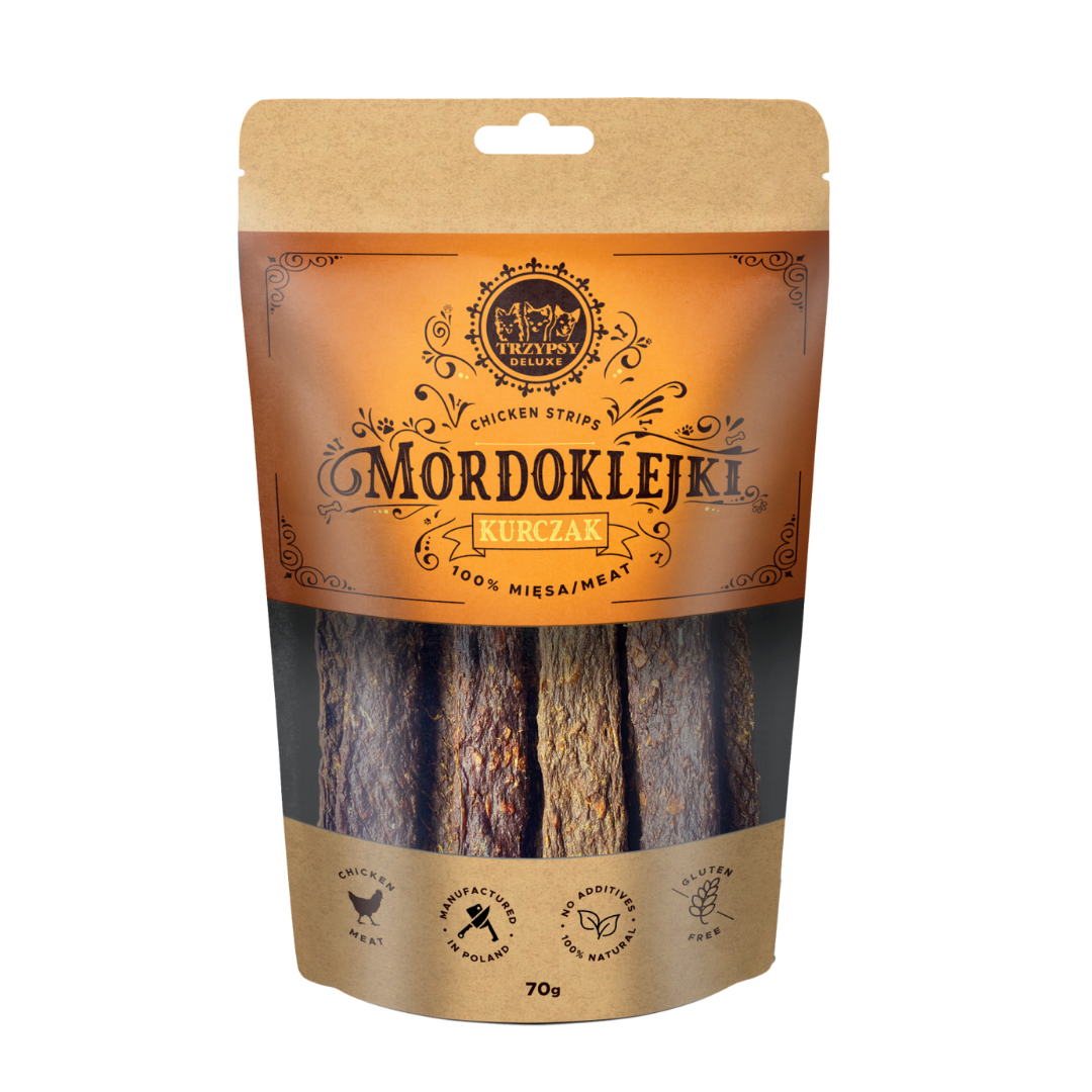 W pełni naturalne gryzaki dla psów, wykonane ze 100% mięsa w formie podłużnych pasków. Nie zawierają konserwantów ani barwników. Przysmak ten jest smaczny i pożywny, stanowi doskonałe uzupełnienie codziennej diety naszego pupila. Idealnie sprawdzą się jako nagroda. Opakowanie zawiera 70g produktu.
