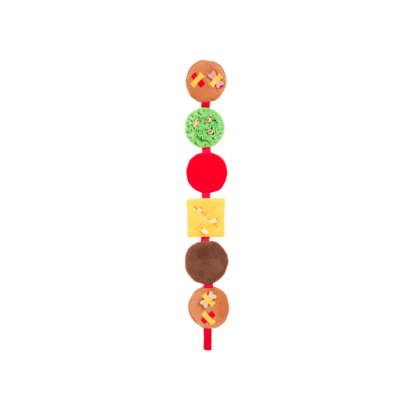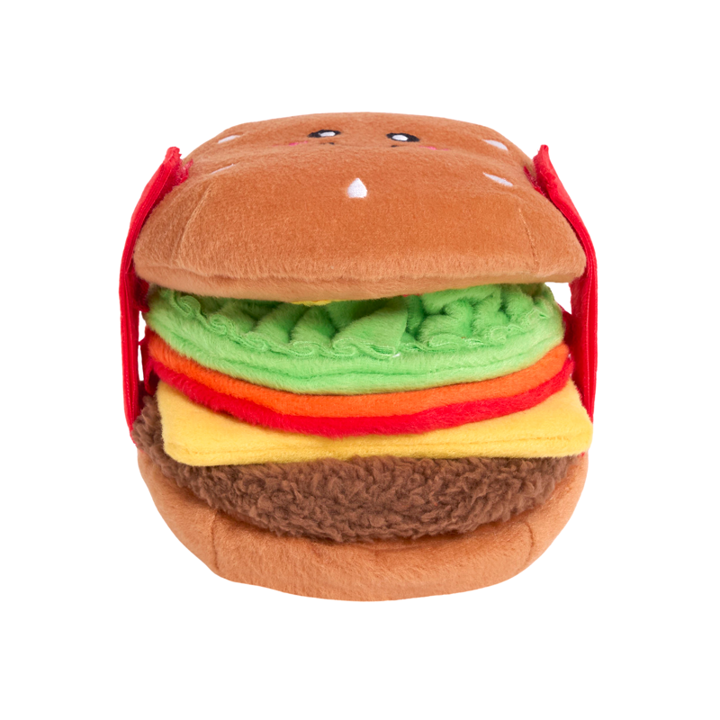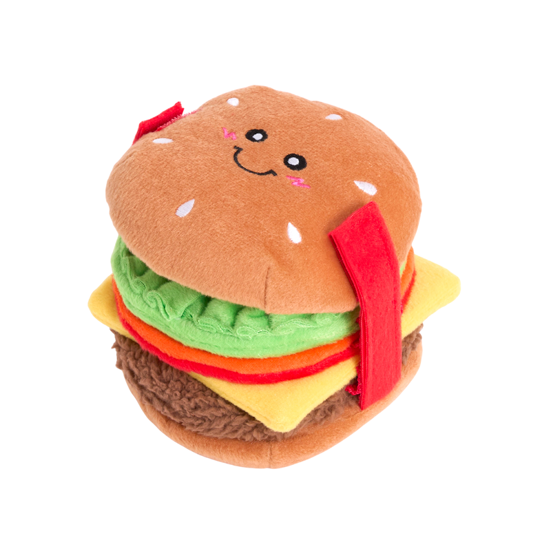 Cheeseburger to interaktywna zabawka węchowa dla psa, która angażuje pupila i pobudza jego naturalny instynkt poszukiwania smakołyków. Wystarczy ukryć przysmaki w warstwach pluszowego cheeseburgera, a Twój pies z radością zacznie je wyszukiwać.